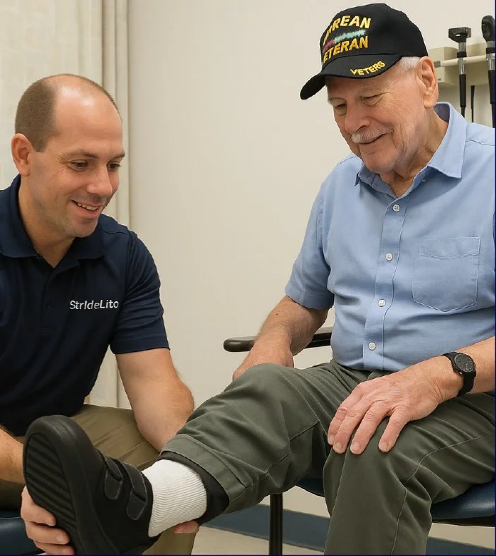At Stride Lite, we are honored to support America’s Veterans by delivering reliable, high-quality products and services that prioritize health, comfort, and mobility. With over 12 years of experience serving many national VA hospitals, we understand the needs of VA facilities and the Veterans they serve.